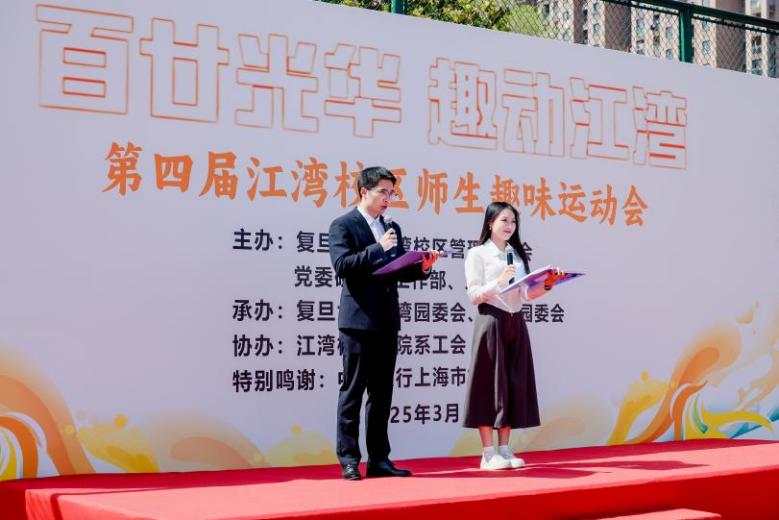 3月25日下午,风和日丽,艳阳高照,bet365中国-bet365大陆 近20名师生在工会主席凌云老师的带领下,参与了江湾校区管委会组织的第四届复旦大学江湾校区师生趣味运动会。本次运动会各个环节组织有序,共有15只队伍近300人报名参赛。开赛前,学校领导及赞助商代表热情发言,充分肯定本次活动的意义,校园歌手合唱羽泉组合的《奔跑》为大家加油鼓气。
