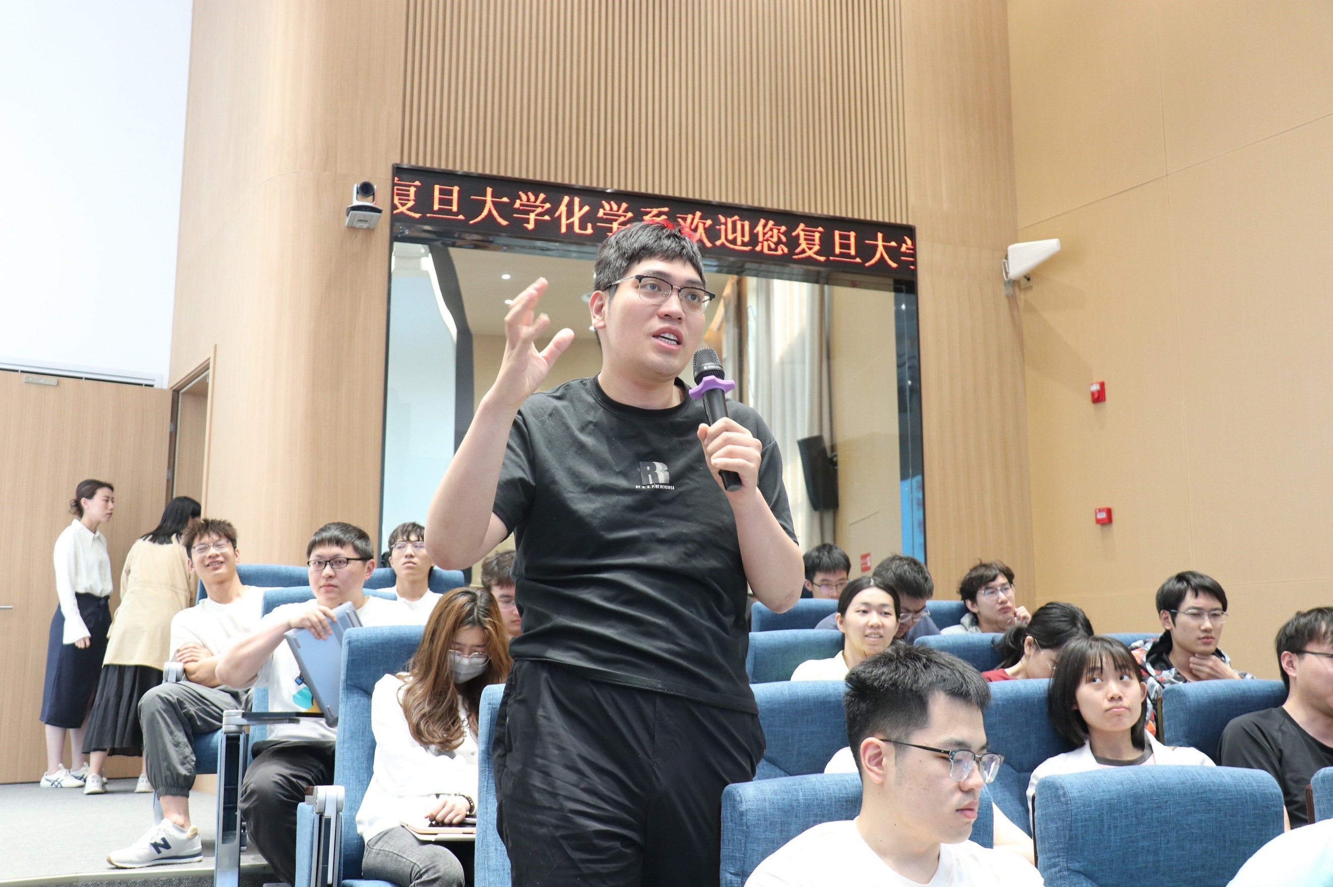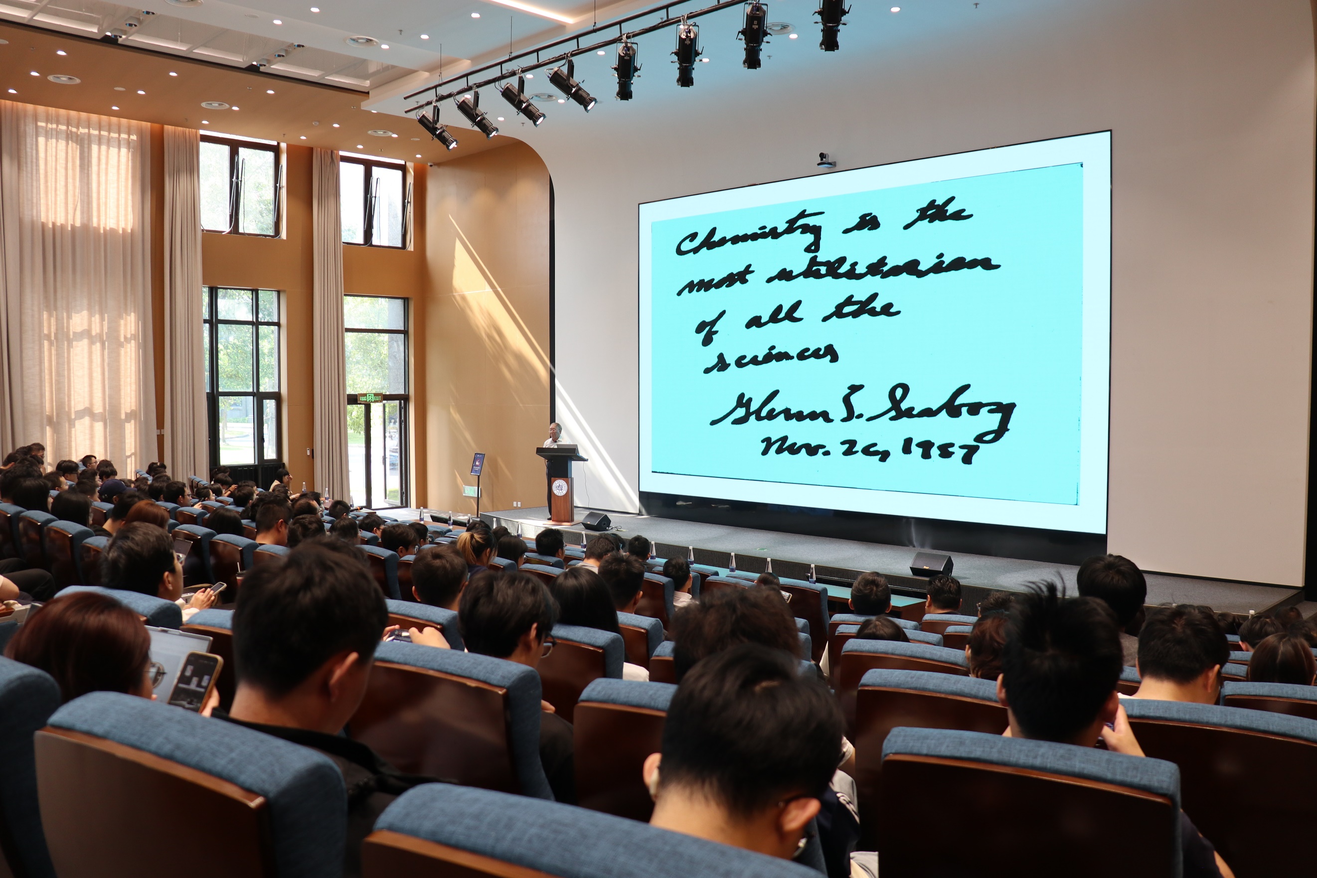 报告最后,柴院士展望了锕系元素化学的未来。他提出,从事锕系元素研究充满乐趣与惊喜。如今,113到118 号元素已成功合成,但合成超锕系元素仍困难重重。他抛出一系列引人深思的问题:周期表是否存在终点?若存在,终点在哪里?元素会消亡吗?元素有诞生,是否也会有终结?这些极具前瞻性的问题,引发了在场师生的强烈兴趣与深入思考。