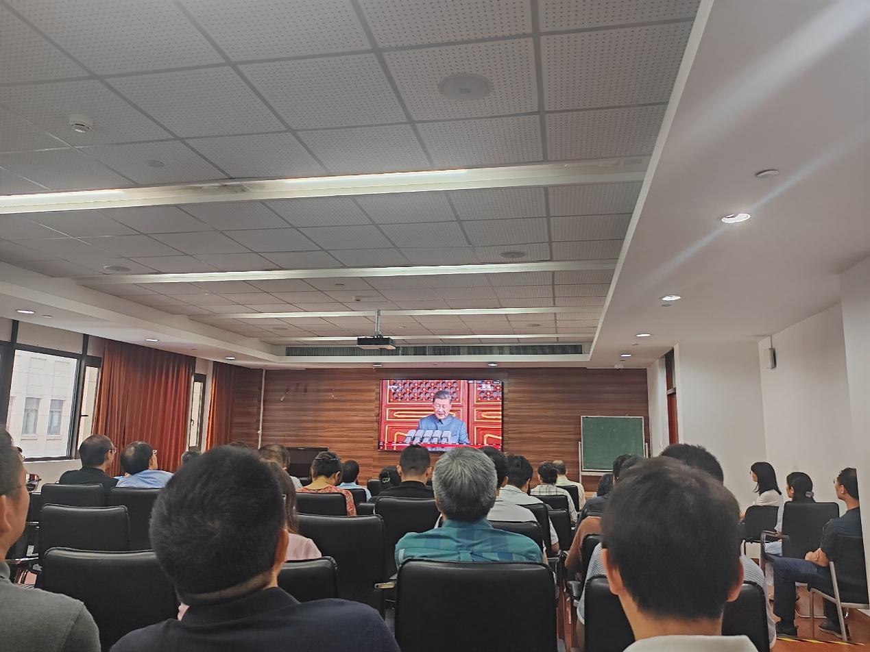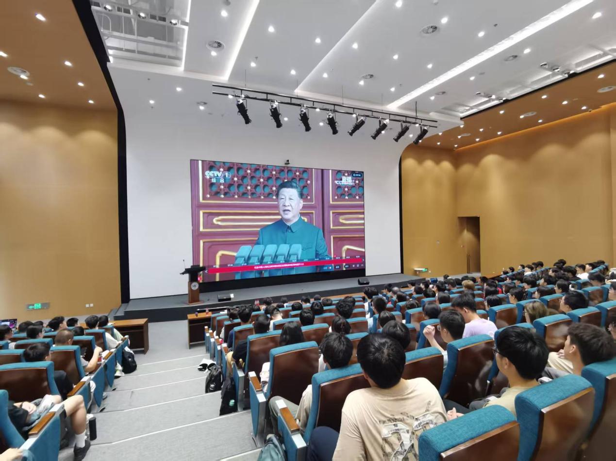 9月3日9时,纪念中国人民抗日战争暨世界反法西斯战争胜利80周年大会在北京天安门广场隆重举行。中共中央总书记、国家主席、中央军委主席习近平发表重要讲话并检阅部队。为引导师生深刻铭记历史、传承伟大抗战精神,bet365中国 党委组织全系教师和学生代表,分别在江湾校区化学楼A3030会议室与江湾校区化学楼周林林报告厅两个会场,集中收看大会现场直播,近300名师生共同参与此次观看活动。