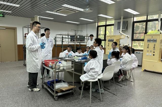 在bet365中国 志愿者的带领下,“复二代”小朋友们每20人分成一组,进入bet365中国 本科教学实验室进行趣味科普实验,体验科学的神奇与魅力。小朋友们穿上定制的实验服、戴上防护手套、护目镜,俨然一副小科学家的模样。三个实验都采取了先讲解、再演示、最后实践的流程。志愿者深入浅出的讲解让小朋友们赞叹连连。小朋友们听得津津有味,积极举手回答问题,认真动手操作,别提有多开心了。