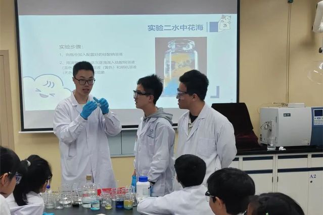 在最后一个专题中,孩子们通过“水下花园”实验,观察了溶液中固体的生成过程。硅酸钠与各种金属盐反应生成不同颜色的沉淀,让孩子们仿佛进入了一个化学的童话世界,感受到了化学反应带来的视觉盛宴。