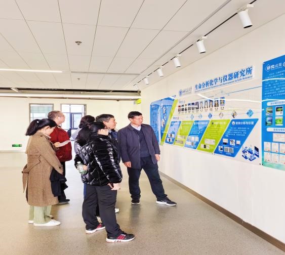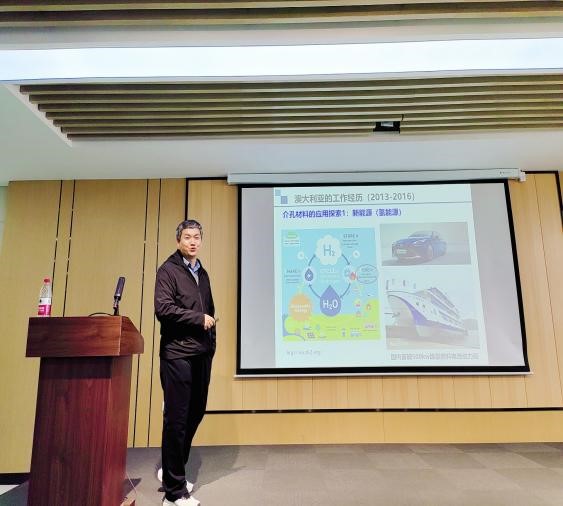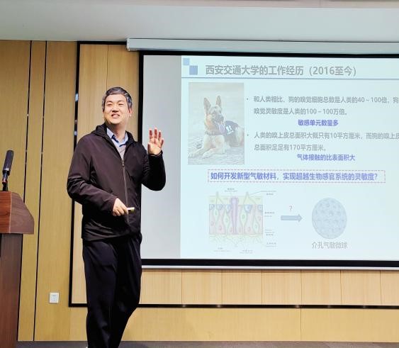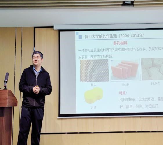 参观生命分析化学与仪器研究所实验室后,魏晶校友做了介孔材料的可控制备及应用学术报告。他分享了在复旦大学度过的九年学习生涯以及在澳大利亚和西安交通大学的工作经历,并介绍了纳米介孔材料的制备、性能、结构、应用以及未来研究计划,引起了校友们的极大兴趣,特别是介孔材料在健康监测和安全预警方面的应用,拓展了校友们对介孔材料应用的认知。