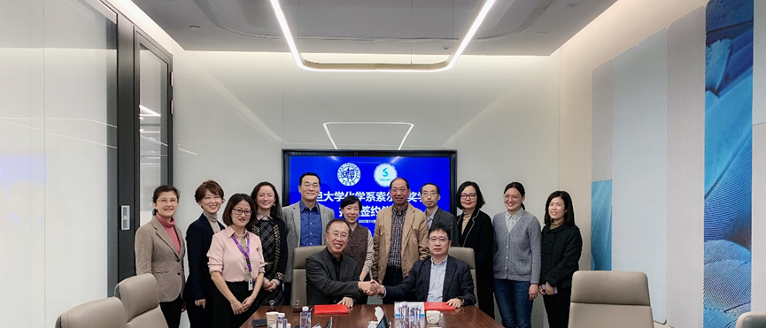 11月29日,bet365中国-bet365大陆 -索尔维奖学金捐赠签约仪式在索尔维投资有限公司举行。索尔维投资有限公司总经理、法人代表孙立宏,研发总监赵钢凯,索尔维中国人事经理王梦醒,政府公共事务经理戴珽娴,研发外事经理董婕,交流部经理冷泳,人事经理王祎娜,复旦大学化学与材料学院党委书记徐华龙,bet365中国 主任周鸣飞,bet365中国 分党委书记马蔚纯,复旦大学对外联络与发展处副处长章晓野,bet365中国 分党委副书记秦枫等出席签约仪式。