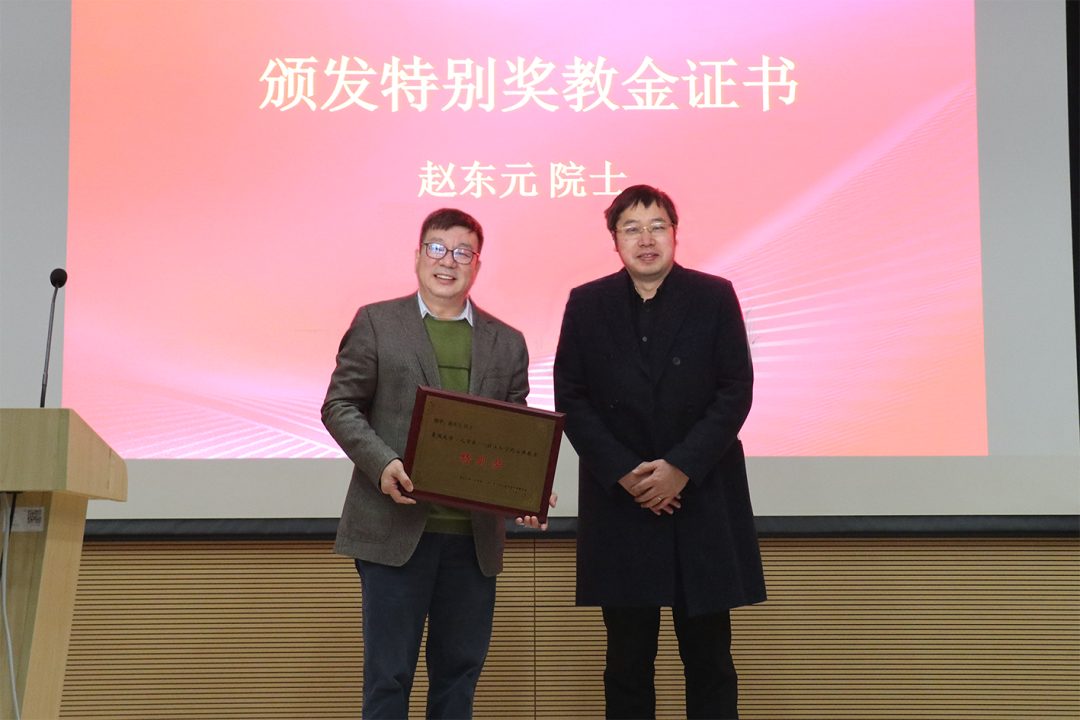 获奖教师代表赵东元院士对浙江永宁药业的支持表示衷心的感谢。他结合自己在复旦工作的经历和大家分享了科研感悟,并鼓励年轻师生紧跟科学前沿、大胆创新突破。获奖学生代表张慧同学表示将不会辜负学校和永宁药业的期望,努力学习,成为一名对国家和社会有用的人才。