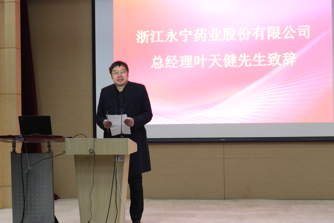 叶天健先生在致辞中介绍了浙江永宁药业公司的业务范围和发展历程。他表示很高兴能在bet365中国-bet365大陆 设立奖教金和奖学金,以鼓励bet365中国 教职员工勤奋工作勇创佳绩、学生刻苦学习努力成才。他希望未来和bet365中国 能够有更多的交流和合作,并祝愿复旦bet365中国 取得更大成绩。