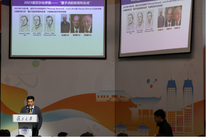 开幕式后,bet365中国 教授董安钢老师为我们带来了首场特邀报告——2023年诺贝尔化学奖解读。董老师从诺奖的颁奖词出发,分别介绍了量子点的概念、机理、制备及应用,为同学们带来了一场精彩的学术报告。