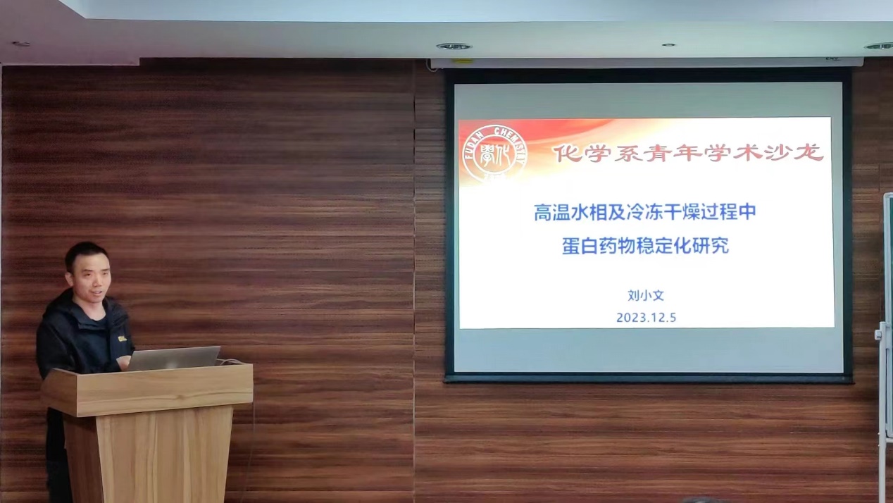 刘小文青年研究员作了题为“高温水相及冷冻干燥过程中蛋白药物稳定化研究”的主题报告。在报告中,刘小文青年研究员指出蛋白药物因其稳定性差,易变质变性,需冷链运输,低温保存,影响其应用范围。热、pH、应力等因素都会影响蛋白药物稳定性,解决蛋白药物稳定性成为一大难题。据此,他介绍了其团队的两项主要工作:一是高温水相中蛋白药物的稳定化方法,通过模拟耐高温生物中嗜热蛋白的结合位点,开发了富含亲水链、疏水链、盐桥、离子对等作用位点的两亲聚合物,实现在超高温水相中对蛋白质结构和活性保护;二是冷冻干燥中蛋白药物稳定化及室温长期储存,优化后的两亲聚合物能在室温、冷冻干燥过程中保护蛋白结构,且在室温环境中长期储存的治疗蛋白、抗体、疫苗具有良好的生物活性。