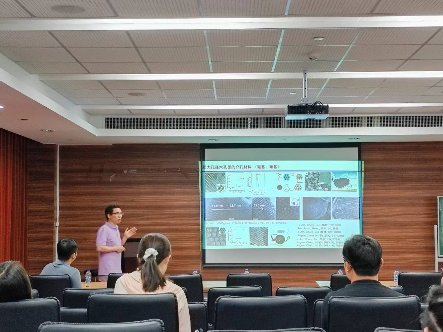 邓勇辉教授作了题为“介孔金属氧化物半导体气敏材料和器件”的主题报告。他指出,其团队的主要工作在于从源头出发,利用新型两亲性嵌段共聚物作为模板剂,发展“自下而上”的合成方法,实现了各种大孔径晶态介观结构材料的控制合成,并研究了这些材料的气敏传感性能。他表明,通过多学科交叉研究,介孔金属氧化物半导体气敏材料将有望突破现有技术的性能瓶颈,在高性能气敏传感器的研发和应用中发挥重要作用。