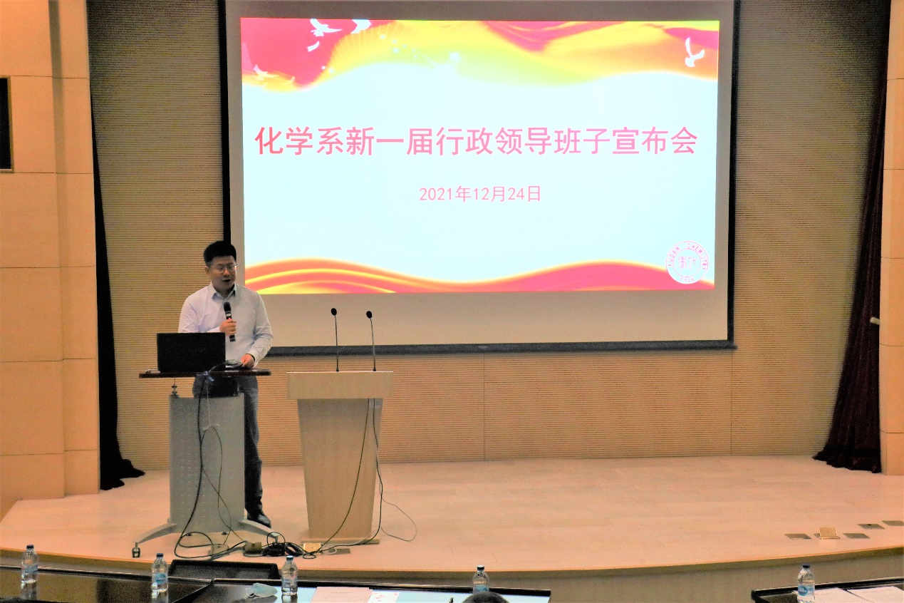 2021年12月24日下午,bet365中国 行政领导班子换届宣布会在先进材料楼报告厅举行。复旦大学党委常委、副校长汪源源,校党委组织部部长周虎、副部长盛晓蕾等同志出席了宣布会。bet365中国 新老行政班子全体成员和全系教职工参加了本次会议。会议由bet365中国 分党委书记马蔚纯同志主持。