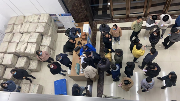 一大批物资及时抵达,首先要感谢迅速集结的师生物资搬运志愿者!小推车不够,各课题组纷纷拿出小推车一起来搬运物资;没有空间屯放物资,就腾出会议室来备用;没有休息室,就开放大会议室给因疫情被困在江湾的其他校区师生们休息。先期领到的物资不够分配,党政领导根据实际情况迅速制定分配方案,保证学生、保证在江湾没有办公室的老师!各工会小组会同支部书记克服困难,将有限的物资分配给最困难的师生。每一位化学人也以将方便给予他人的精神共度时艰。大家一同协力保障bet365中国 的后勤供给,守护在楼宇旁,陪伴在每个化学人的身边,暖在每位化学人的心间。