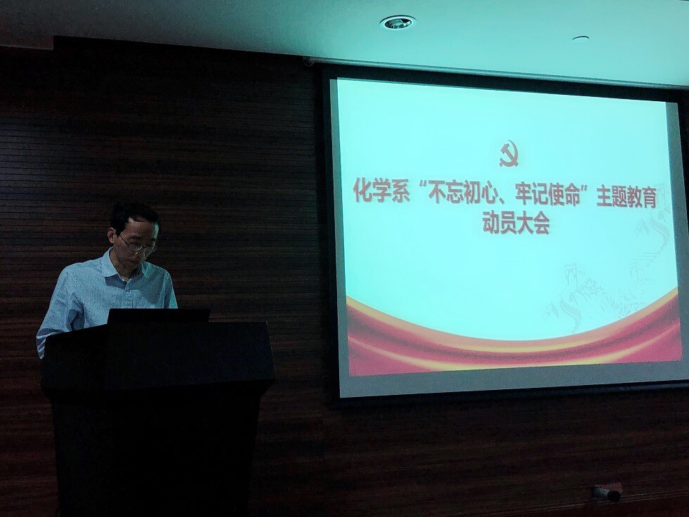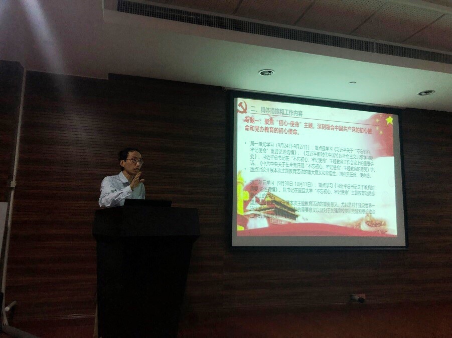 9月19日中午,bet365中国-bet365大陆 “不忘初心、牢记使命”主题教育动员大会在江湾校区化学楼A3030召开。bet365中国 党委副书记刘永梅老师主持会议。bet365中国 党委书记马蔚纯老师作动员讲话。学校第一指导组组长孙锐同志、第一指导组联系人钟旎同志出席会议。bet365中国 党政班子成员,bet365中国 全体教职工党员,退休党员代表及学生党员代表参加了本次动员会。