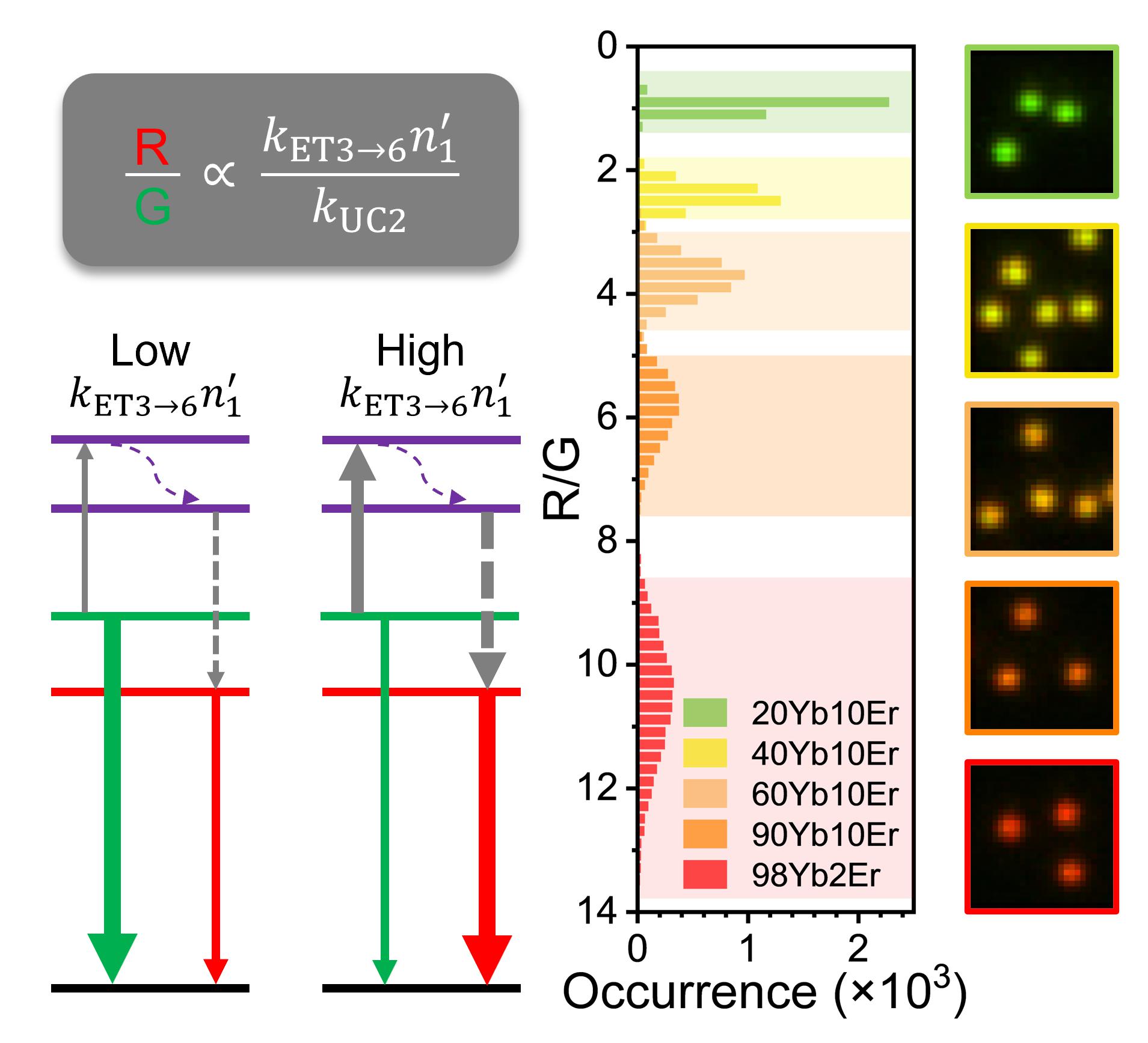 图1:基于UCNP红绿光比值的多色单粒子追踪策略