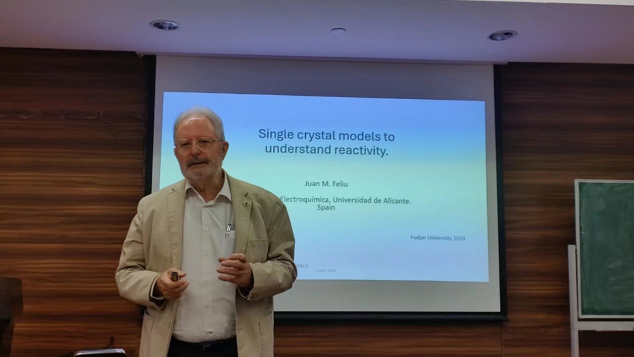 在报告开始,Juan M. Feliu教授讲解了利用旋转圆盘电极,通过调节不同转速测定了氧还原反应的决速步骤。他指出氧气还原反应中第一电子转移步骤是反应的决速步骤。紧接着,Juan M. Feliu教授从单晶Pt出发,详细讲解了使用单晶模型电极所获得的信息,并为现场师生解释了该信息在理解金属铂多晶样品和纳米颗粒电化学响应中的重要应用和意义;随后Juan M. Feliu教授介绍了在单晶模型电极上氧气还原与过氧化氢的氧化还原过程,尤其是在Pt(111)上氧气还原过程,探讨了pH值、扫描速度以及溶液纯净度等对该反应的影响,并结合电化学表面增强拉曼光谱对氧还原反应中间体进行了监测,提出了氧还原反应机制。最后,Juan M. Feliu教授对本场报告进行了总结。在问答环节,现场师生就其研究中遇到的问题与Juan M. Feliu教授进行深入探讨。