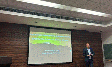 Bert M. Weckhuysen教授聚焦多相催化在未来的发展,利用并发展各种先进原位表征手段,围绕CO2催化转化、生物质转化和塑料降解等做出了系列工作。首先,Bert M. Weckhuysen教授介绍了负载型Ni基催化剂在CO2加氢反应中的尺寸效应,采用Quick operando XAS和IR表征技术探究在CO2与H2反应中Ni基催化剂中的构效关系和活性位-反应中间体的原位动态变化,得到了CO2转化的全反应路径;二是生物质(Chitin)和塑料降解制精细化学品的工作,利用原位光谱、电镜和原子探针成像技术从原子分子水平上揭示了催化剂表面反应机理,成功获得了Chitin的活化与转化过程及聚丙烯分解的可视化信息。Bert M. Weckhuysen教授的报告精彩纷呈,讲解条理清晰,生动有趣。互动环节中,Bert M. Weckhuysen教授与参会师生就报告关键性内容进行了热烈的交流和探讨。