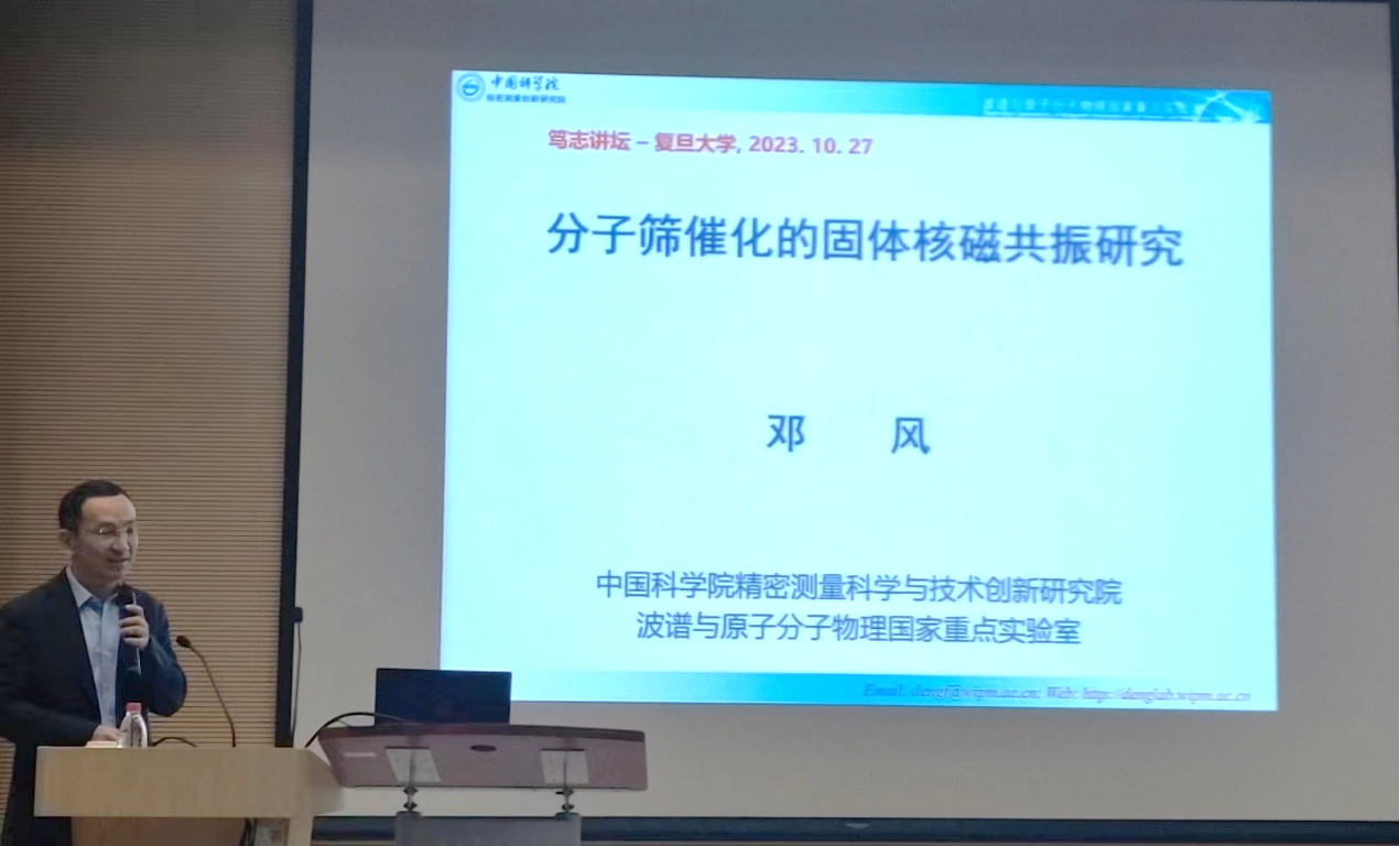 10月27日下午,bet365中国 “笃志讲坛”第十四讲在江湾校区先进材料实验室一楼报告厅顺利举行。中国科学院精密测量科学与技术创新研究院邓风研究员应邀作题为“分子筛催化的固体核磁共振研究” 的主题报告,报告会由bet365中国 贺鹤勇教授主持。