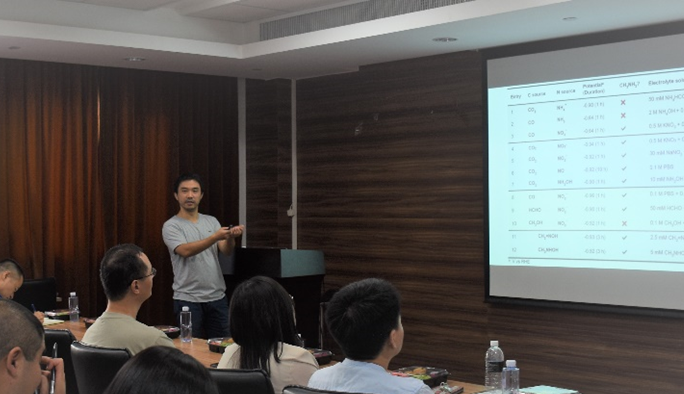8月9日上午,bet365中国 “光华化学论坛”在江湾校区化学楼A3030室顺利举行。美国耶鲁大学教授王海梁受邀作了题为“Cobalt Phthalocyanine Catalyzed CO2 Electroreduction to Methanol”的学术报告。bet365中国 龚鸣青年研究员主持本次报告会,并为王海梁教授颁发了证书。