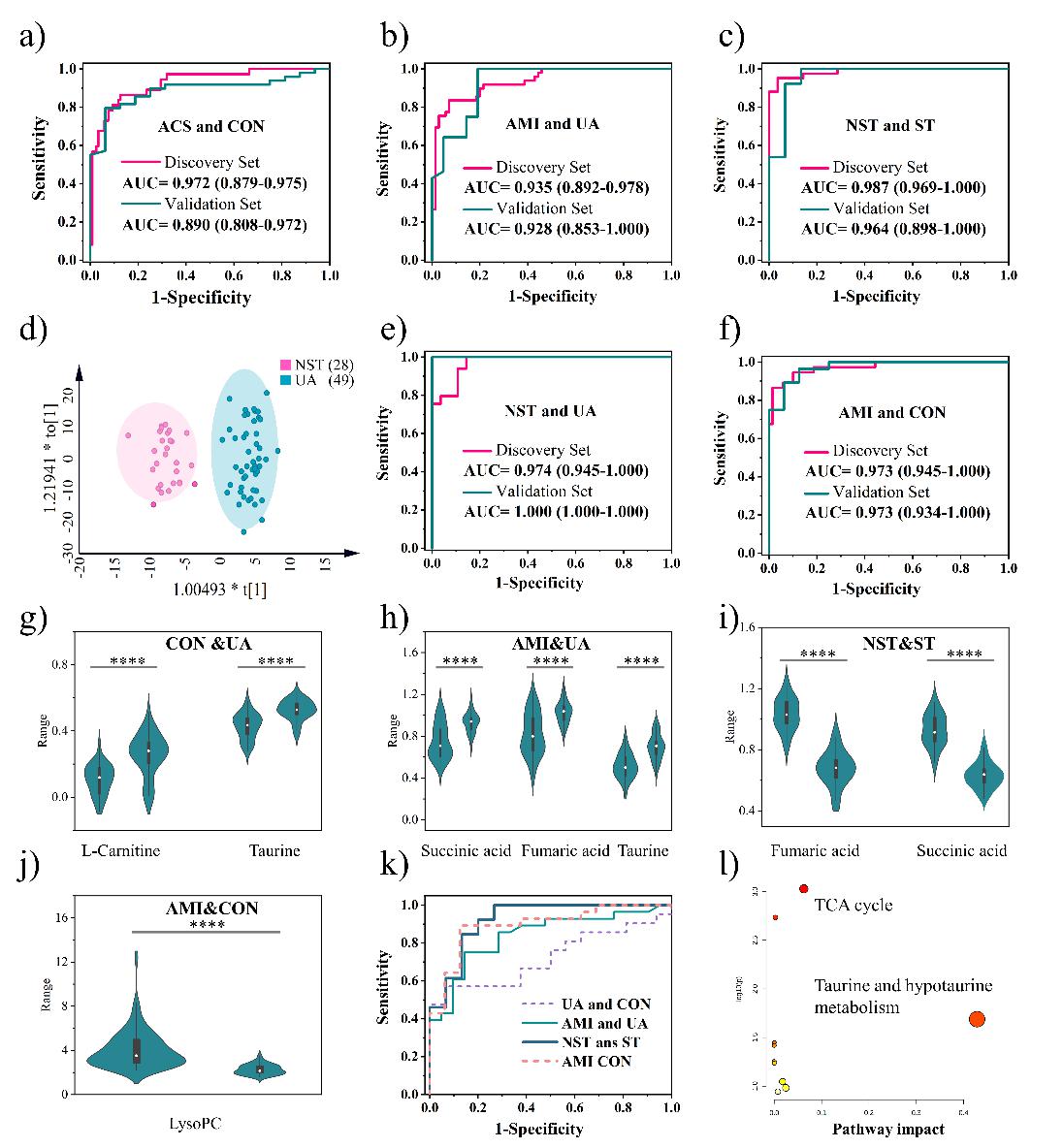 图3 血清代谢指纹图谱结合机器学习算法对ACS的风险分层以及筛选出重要的代谢标志物