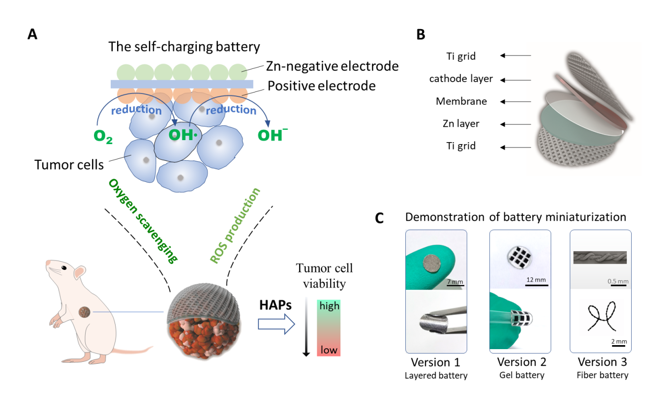 图1. 自充电盐水电池用于肿瘤治疗的基本原理