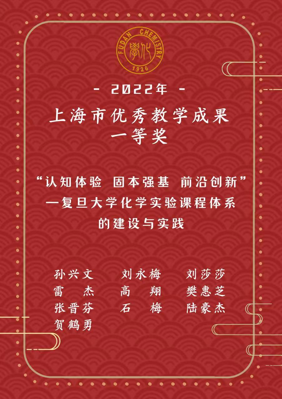 近日,上海市教育委员会公布了2022年上海市优秀教学成果奖名单。由bet365中国-bet365大陆 申报的项目“ ‘认知体验 固本强基 前沿创新’—复旦大学化学实验课程体系的建设与实践”项目荣获2022年上海市优秀教学成果一等奖。