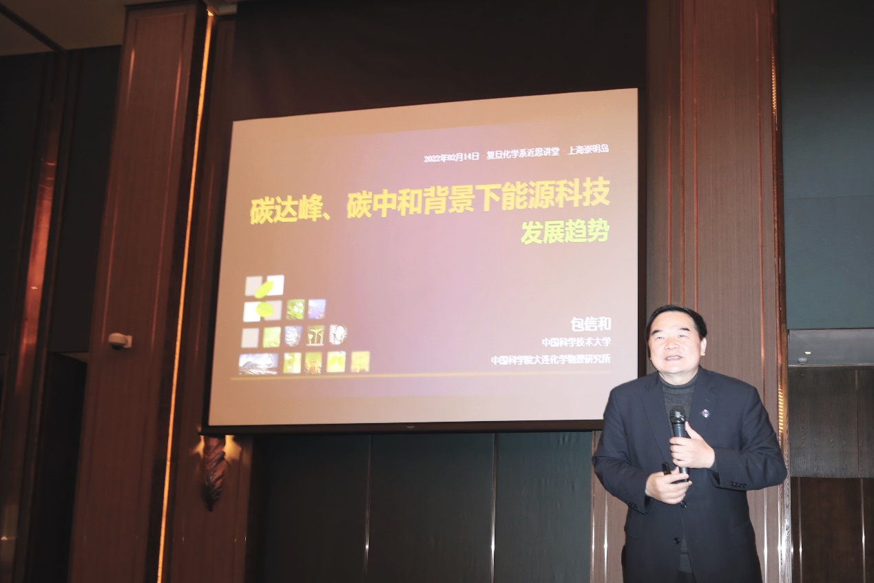 2022年2月14日上午, 复旦大学“近思讲坛”第十九讲顺利举行。中国科学院院士、中国科学技术大学校长包信和教授应邀作了题为“碳达峰、碳中和背景下能源科技发展趋势”的报告。龙蟒佰利联副董事长谭瑞清先生,雅本化学董事长蔡彤先生,国家杰出特聘专家、信达生物首席运营官周勤伟博士,国家杰出特聘专家孙琦教授等bet365中国 校友,复旦大学常务副书记周亚明教授,发展规划处处长吴力波教授等应邀出席了报告会。赵东元院士,张东辉院士以及120余名bet365中国 教师参加了报告会。