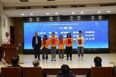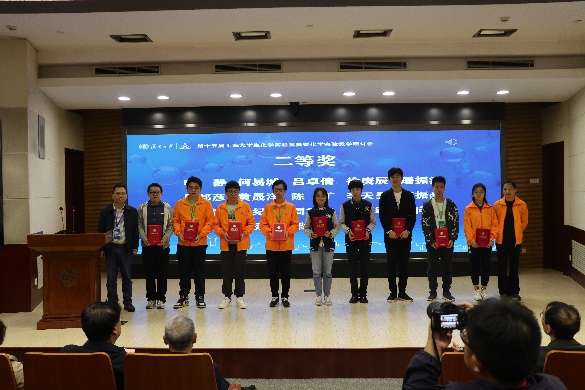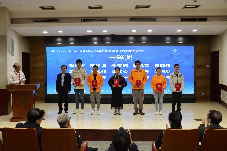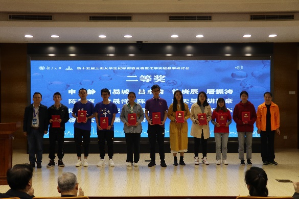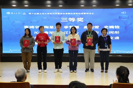 本次竞赛包含理论笔试和实验技能测试两部分。笔试内容涵盖有机化学、无机化学、分析化学和物理化学四个二级学科,主要检验学生对实验相关的化学理论知识的掌握情况以及对实验现象的科学理解;实验部分分为物理化学、有机化学、无机及分析化学三组,主要考察基础化学实验的技术和方法。经过两天紧张的竞赛,共评出一等奖9名,二等奖18名,三等奖16名。我系本科生姚卓言荣获一等奖,申静、陈邦彦荣获二等奖。浙江大学本科生洪子宸作为获奖学生代表发言,分享了参赛体悟。
