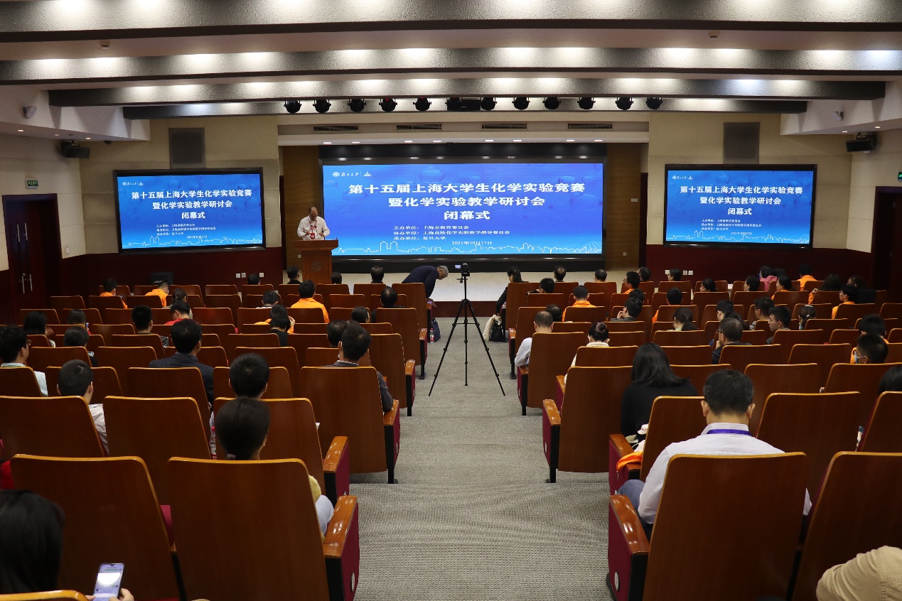 党委书记马蔚纯、上海师范大学化学与材料科学学院院长杨仕平等嘉宾出席闭幕式,马蔚纯对大赛进行总结致辞,杨仕平代表下届竞赛承办单位发言,刘洪来宣布大会正式闭幕。