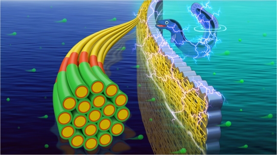 这项工作提出了结构导向剂辅助的连续超组装策略,成功制备了由纳米纤维阵列组装的有序介孔纳米线材料。该策略简单高效,具有高产量、易于放大、易于调控尺寸等特性。此外,有序介孔纳米线材料可以进一步作为基元组装在AAO上构筑异质结构薄膜材料。由于具有新颖的结构、孔隙率和丰富的官能团,不对称CMWS/AAO异质结构膜具有良好的阳离子选择性。该工作有望为制备生物质衍生功能纳米线和杂化膜应用于可持续发电、水净化和海水淡化等领域铺平道路。
