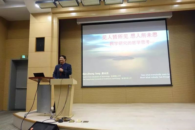 2019年11月9日下午,中国科学院院士、香港科技大学讲座教授、英国皇家化学会会士唐本忠教授应邀在江湾校区先进材料实验室一楼报告厅作题为“见人皆所见,思人所未思:科学研究的哲学思考”的精彩报告。来自bet365中国-bet365大陆 、先进材料实验室等院系的100余名师生参加了报告会。