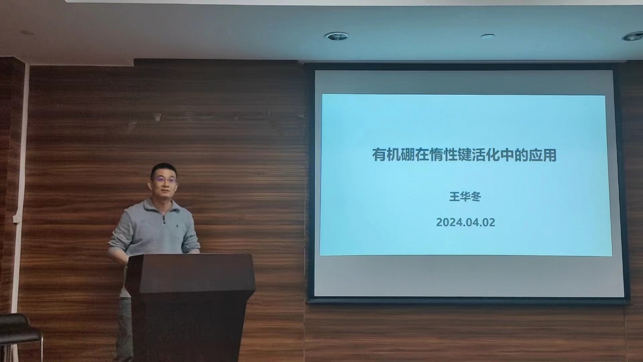 王华冬教授作了题为“有机硼在惰性键活化中的应用”的主题报告。他指出,惰性键的键能高,可极化性低,而活化惰性键的传统方法一般使用铱、钌等贵金属;硼是一类有着使用前景的非金属元素,但硼中心难以发生氧化还原反应,因此,在惰性键活化研究领域,可以利用有机硼的强路易斯酸性,探索非氧化还原的共价键活化新模式。据此,他介绍了其团队的几项主要研究工作——一是有机硼化合物对于C(sp2)-H键的活化,完成了芳烃碳氢键硼基化反应以及苯酚碳氢键硼基化反应;二是有机硼化合物对于C(sp3)-H键的活化,成功完成了有机硼正离子参与的甲烷活化;三是有机硼化合物对于C(sp3)- C(sp2)键的活化,完成了碳碳键的氢解反应,并成功应用于温和条件下聚苯乙烯的降解。