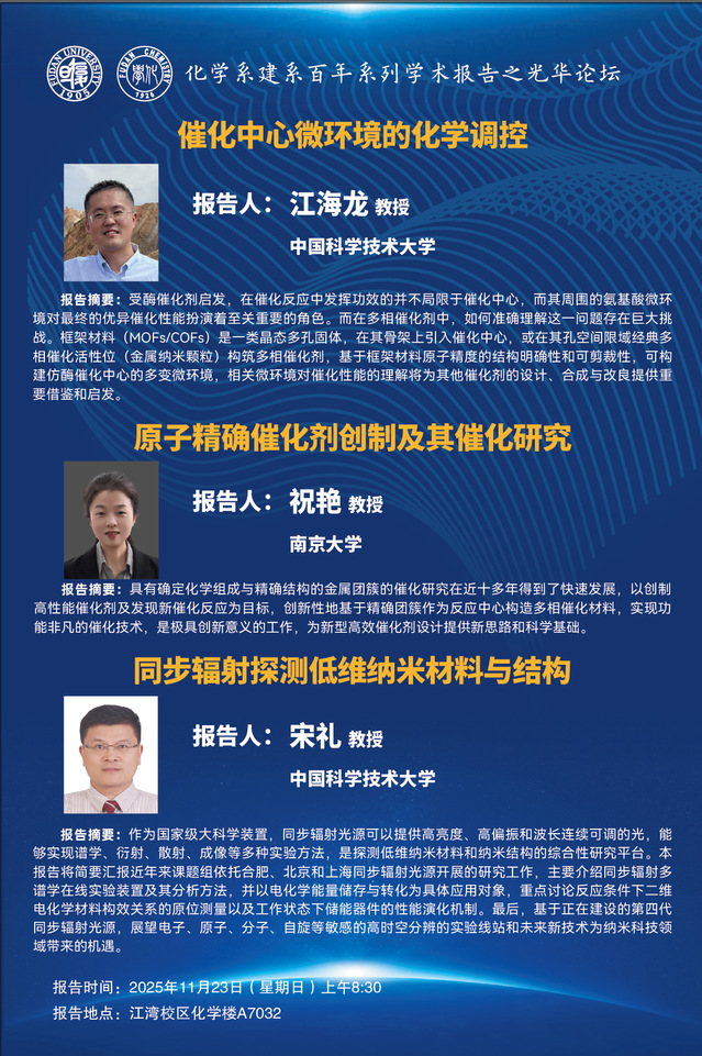 催化中心微环境的化学调控/原子精确催化剂创制及其催化研究/同步辐射探测低维纳米材料与结构