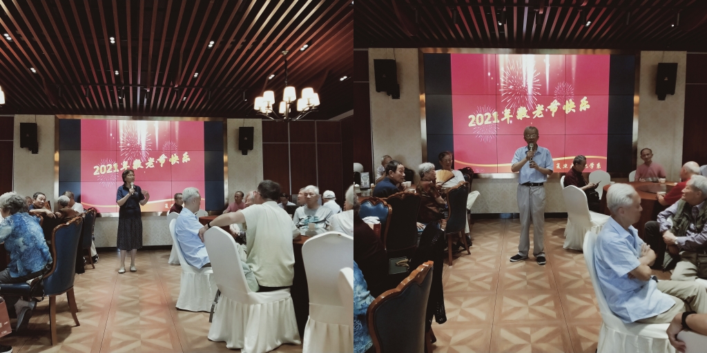 中午,大家在复旦南苑餐厅共聚午餐。席间,老同志们互致问候,交流各自的健康状况和退休生活。在一片温馨的气氛中,大家度过了一个快乐、祥和的敬老节。