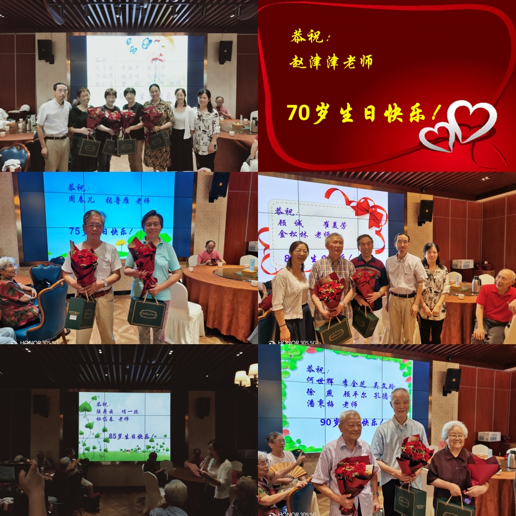 随后,刘永梅老师主持“祝寿活动”并宣读寿星名单。伴随着温馨的生日快乐音乐旋律,马书记向寿星们送上了鲜花、生日礼物和诚挚的祝福。今年bet365中国 共有25位“逢五逢十”过生日的退休老师,他们上台接受了大家的祝福并发表了寿星感言,表达了对于今天生活的快乐感受和对bet365中国 的美好祝愿。