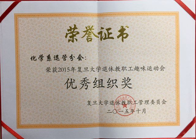 bet365中国 退管分会荣获”2015年复旦大学退休教职工趣味运动会优秀组织奖“