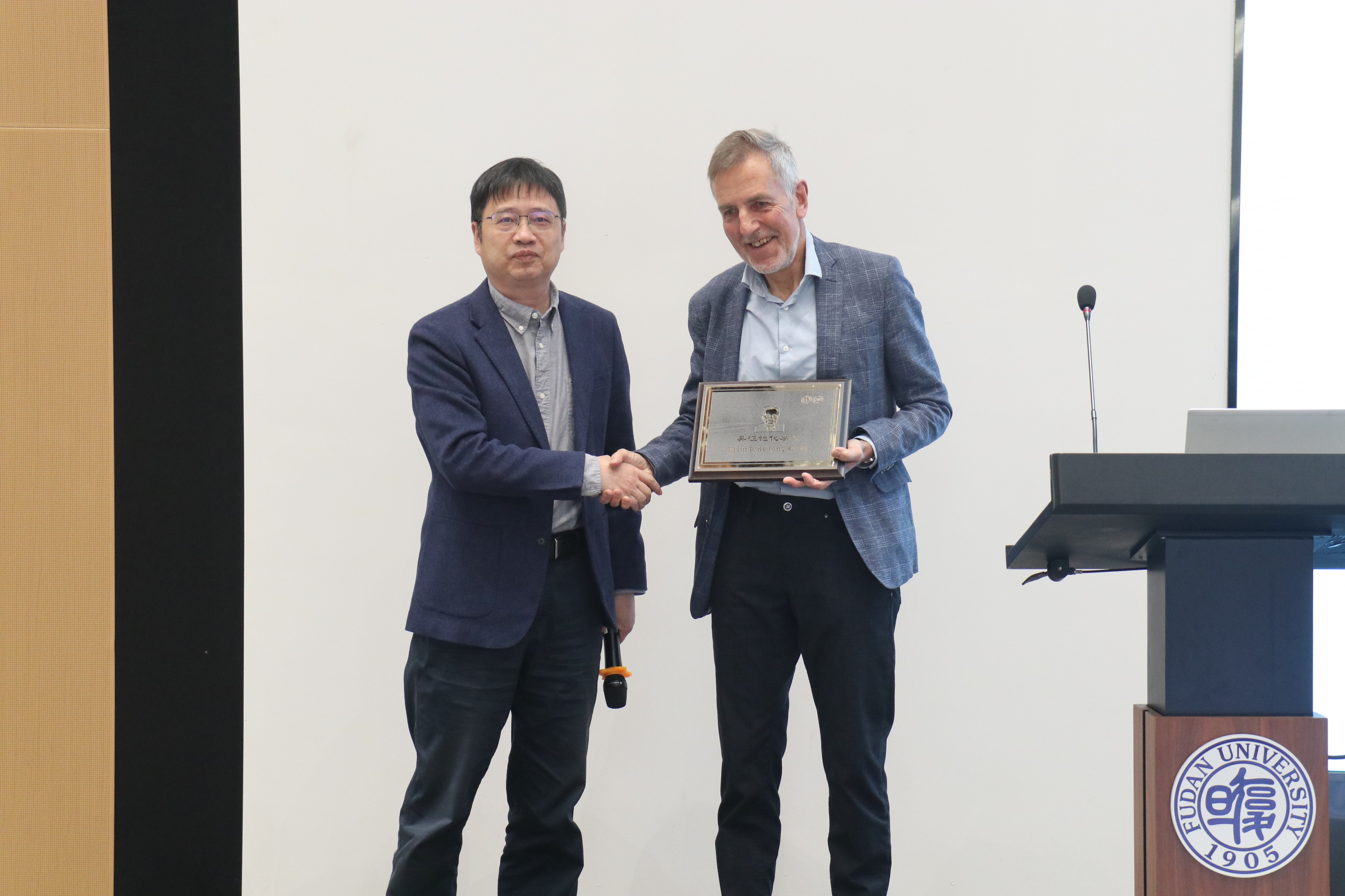 “近思讲坛”于2016年bet365中国 建系九十周年之际设立,旨在邀请化学研究领域的顶级科学家,分享自己对于科研工作的思考、认识和体会,奉献卓越智慧,帮助bet365中国 师生拓展科研视野,提升科研水平。bet365中国 周鸣飞教授代表“近思讲坛”组委会向Krijn P. de Jong教授颁发了“吴征铠化学奖”,以表彰Krijn P. de Jong教授在化学研究领域作出的卓越贡献。吴征铠化学奖由bet365中国 89级校友、雅本化学董事长蔡彤先生捐赠支持。