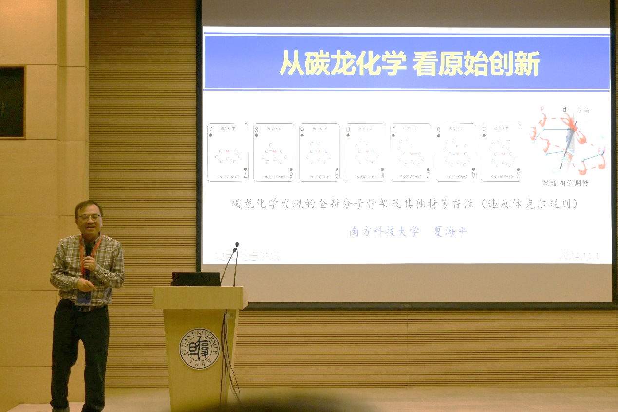 夏海平教授围绕碳龙化学发现的全新分子骨架及其独特芳香性的研究方向,分享了碳龙化学在新结构、新反应、新应用等方面的系列成果。他结合极端环张力和高度稳定性的矛盾,详细介绍了芳香性是其稳定根源的理论证据和实验证据。此外,夏海平教授还详细阐述了碳龙化学的拓展方向和奋斗目标,包括挖掘全新的碳龙结构基元、开发碳龙化学的新反应、以及探索其性能与应用空间。